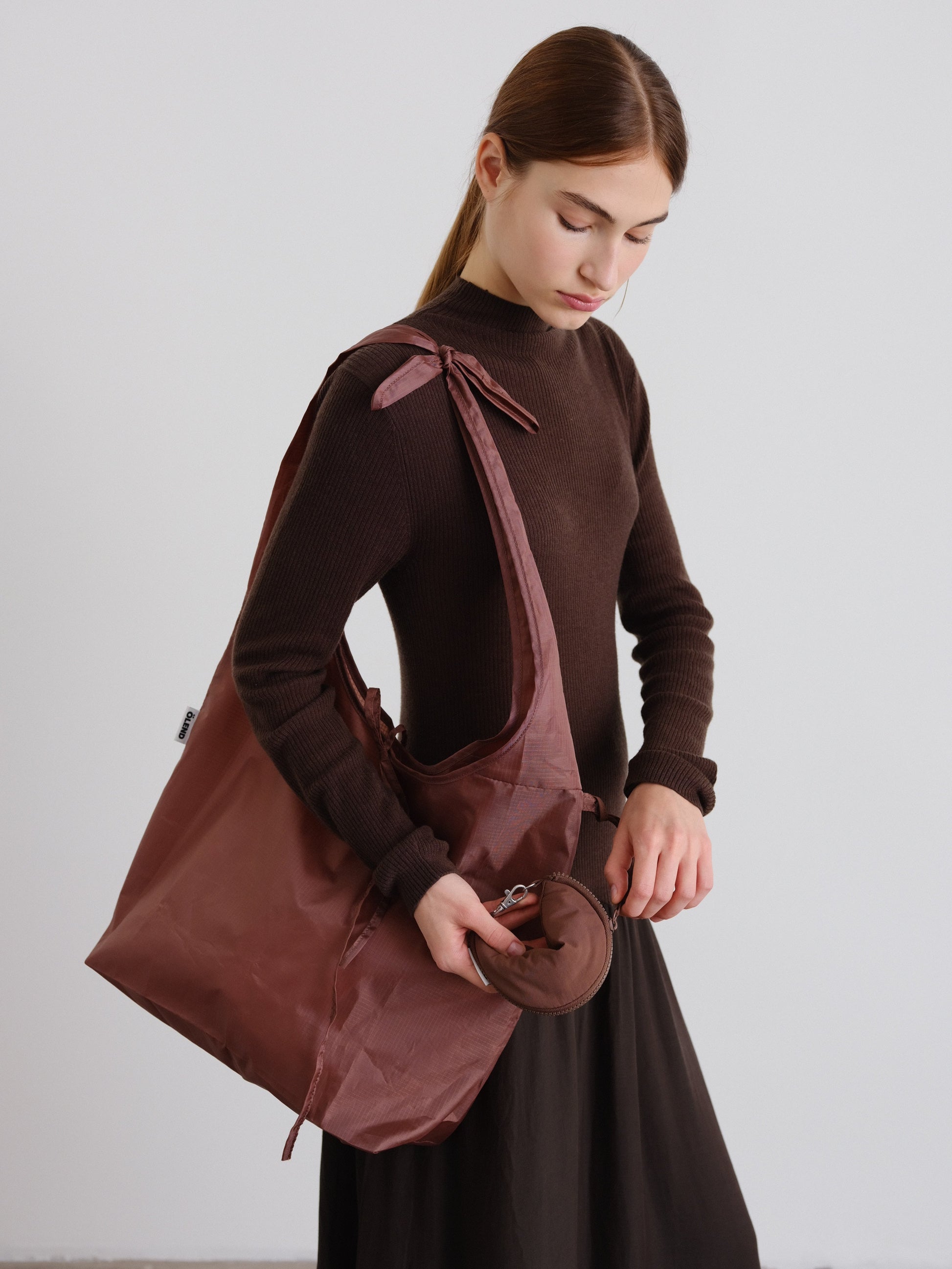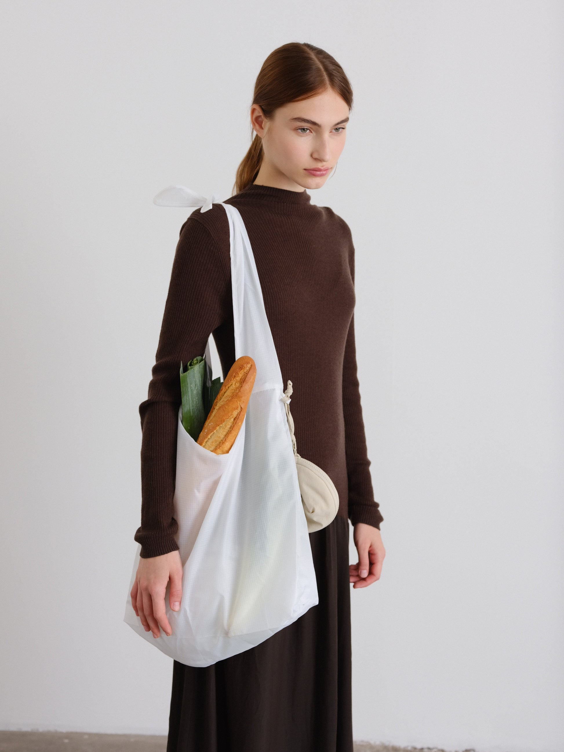 The Dumpling Bag can be worn in multiple ways: as a pouch, crossbody bag, or shoulder bag by either adjusting or removing the strap. This versatility expands its range of use and thereby optimizes its lifespan. This "3 in 1" functionality aligns with responsible and sustainable consumption by reducing the need for multiple bags for different occasions.