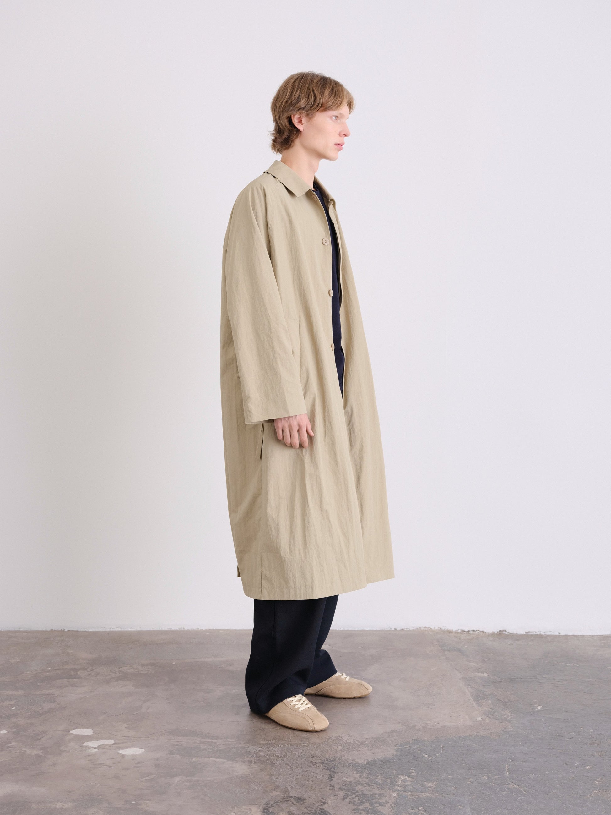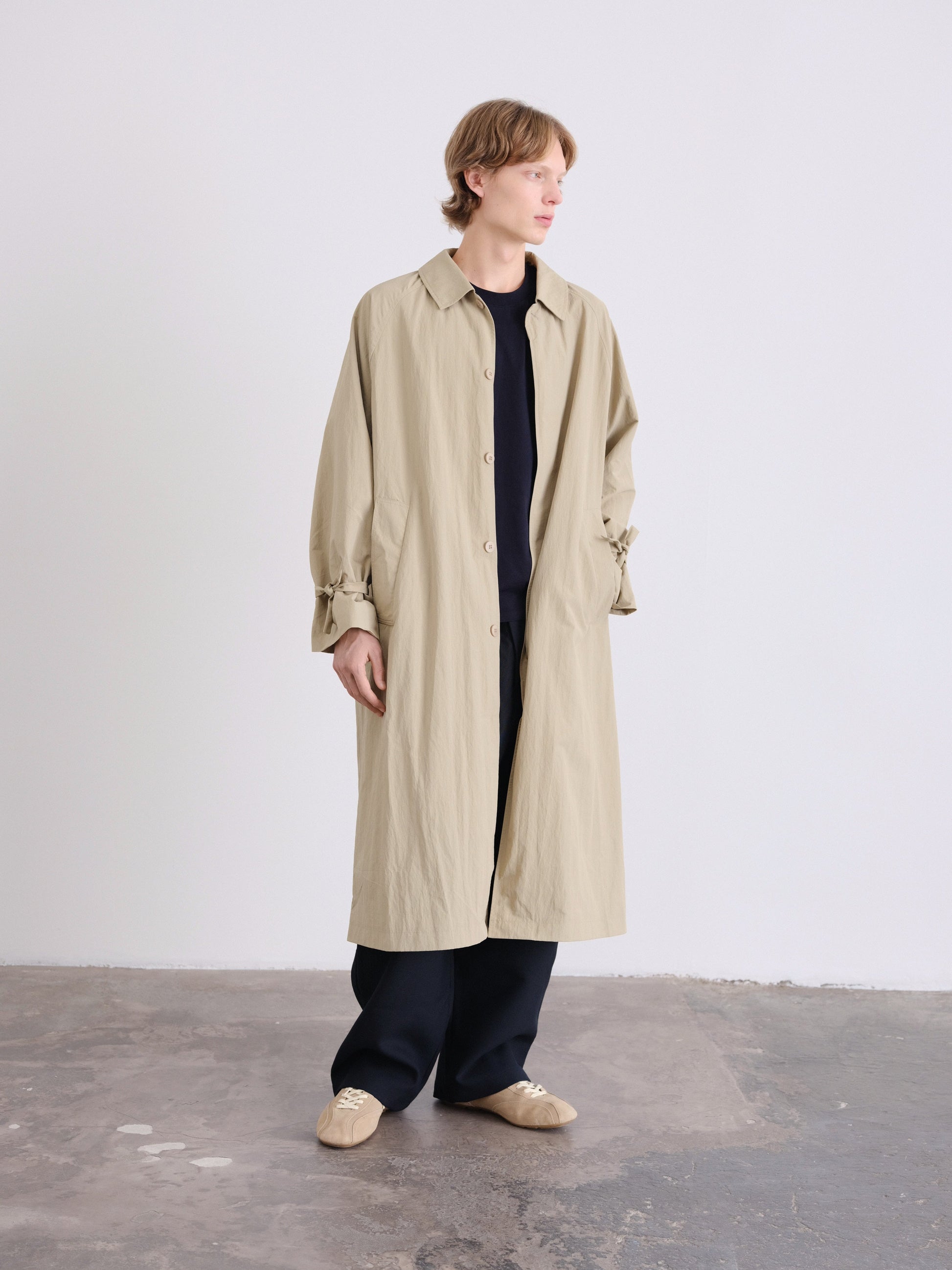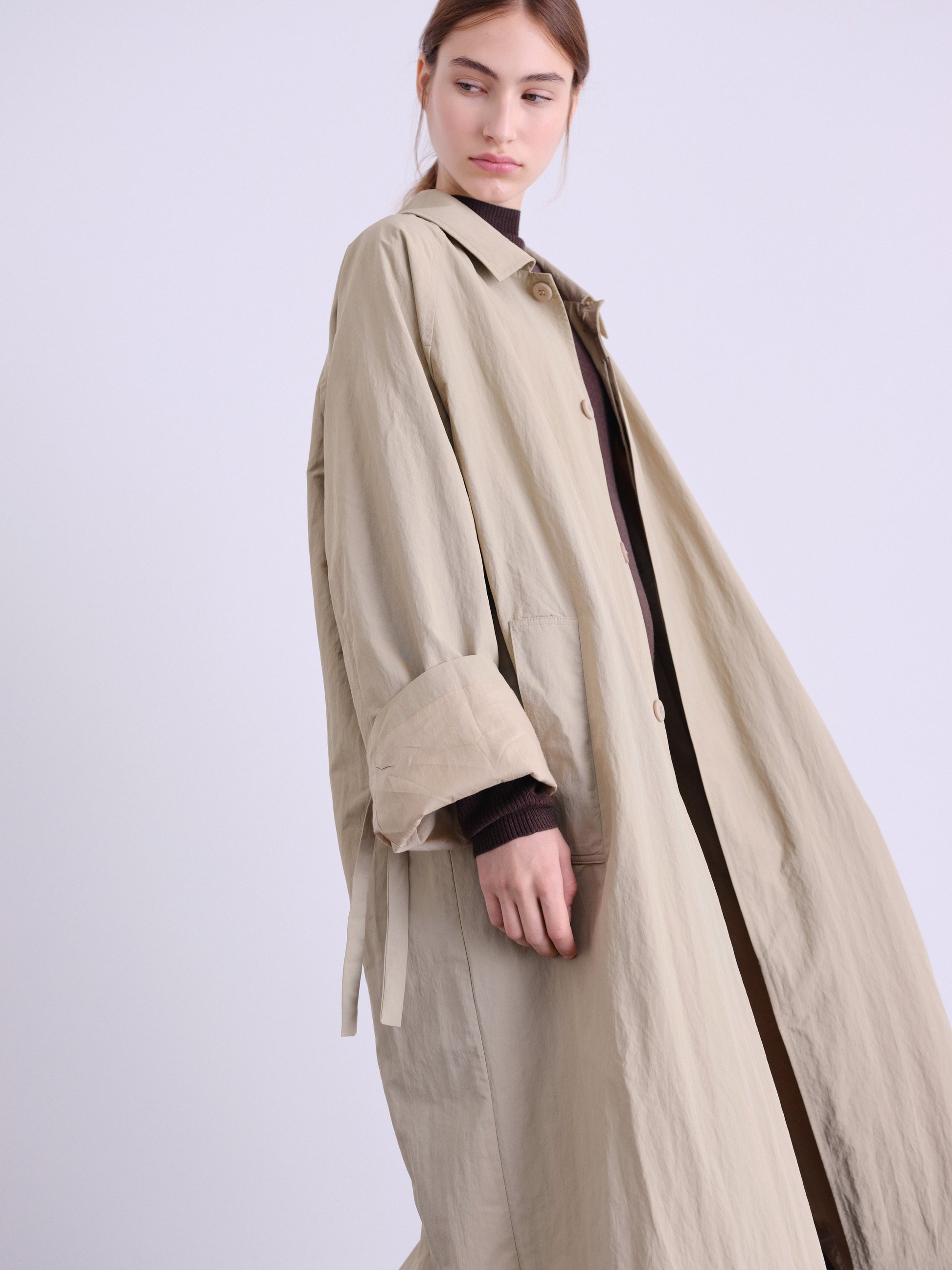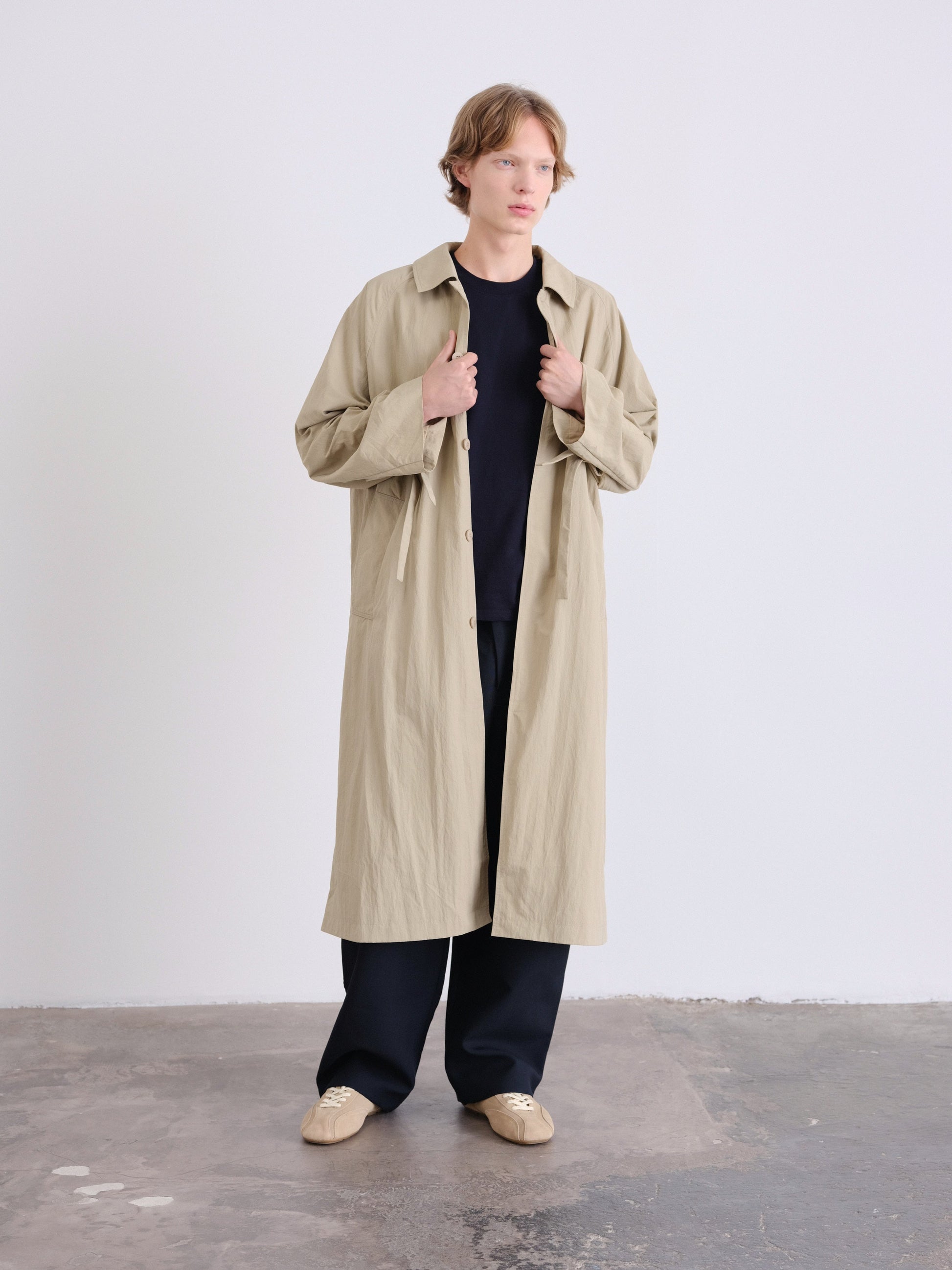 An elevated take on a timeless essential. This unisex, one-size trench features a refined oversized silhouette, designed to drape effortlessly on every body.